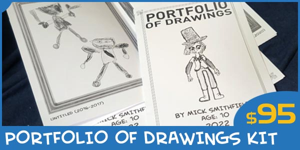 It’s taken several months, but finally it’s here! Take your child’s drawings and comics to the next level with Todd’s art kits that help them create 5.5″x8.5″ booklets from their work! These art kits come with everything you need, and in the end you get a stack of ten professionally printed booklets in your hand, perfect for gifts or keepsakes, or to even sell! (more booklets can also be bought for an extra fee.)
